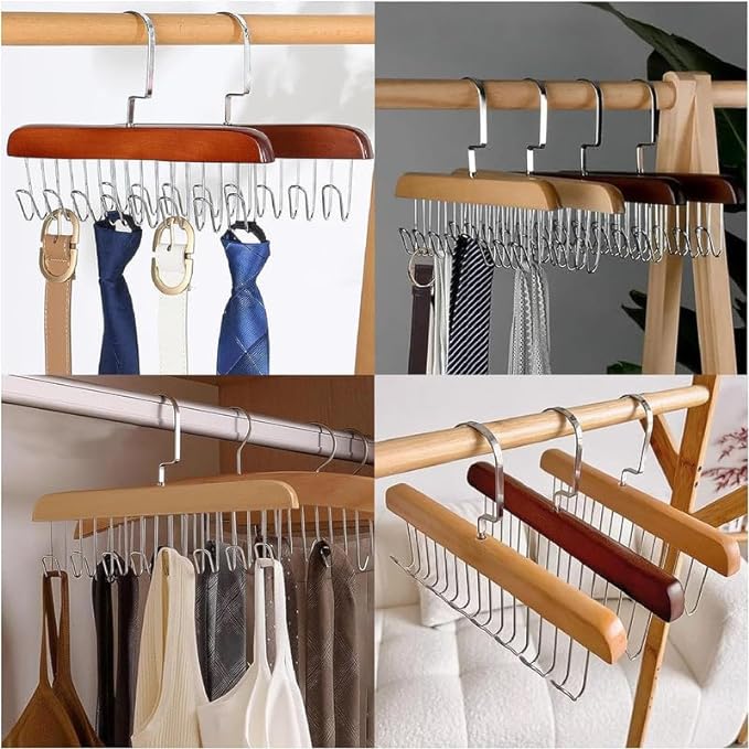 Multi-purpose functionality: These hangers are not just for clothes. The eight hooks can be used for a wide range of accessories, including hats, bags, and belts.
