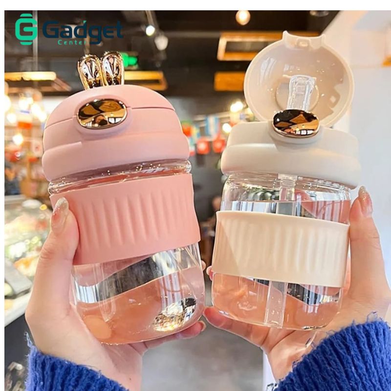 High-value and durable cute rabbit straw cup heat insulation I Lovely Cartoon Rabbit 400 ml Water Cup I High Quality Portable Glass Cup Simple Large Capacity Water Bottle with Straw I Cute Rabbit Ear Glass Water Bottles With Straw For Girls