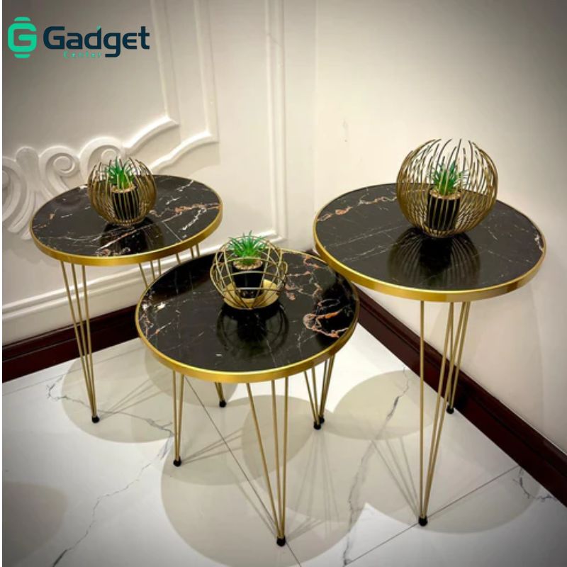 - Material: High-quality black marble top with sturdy gold-colored iron frame.