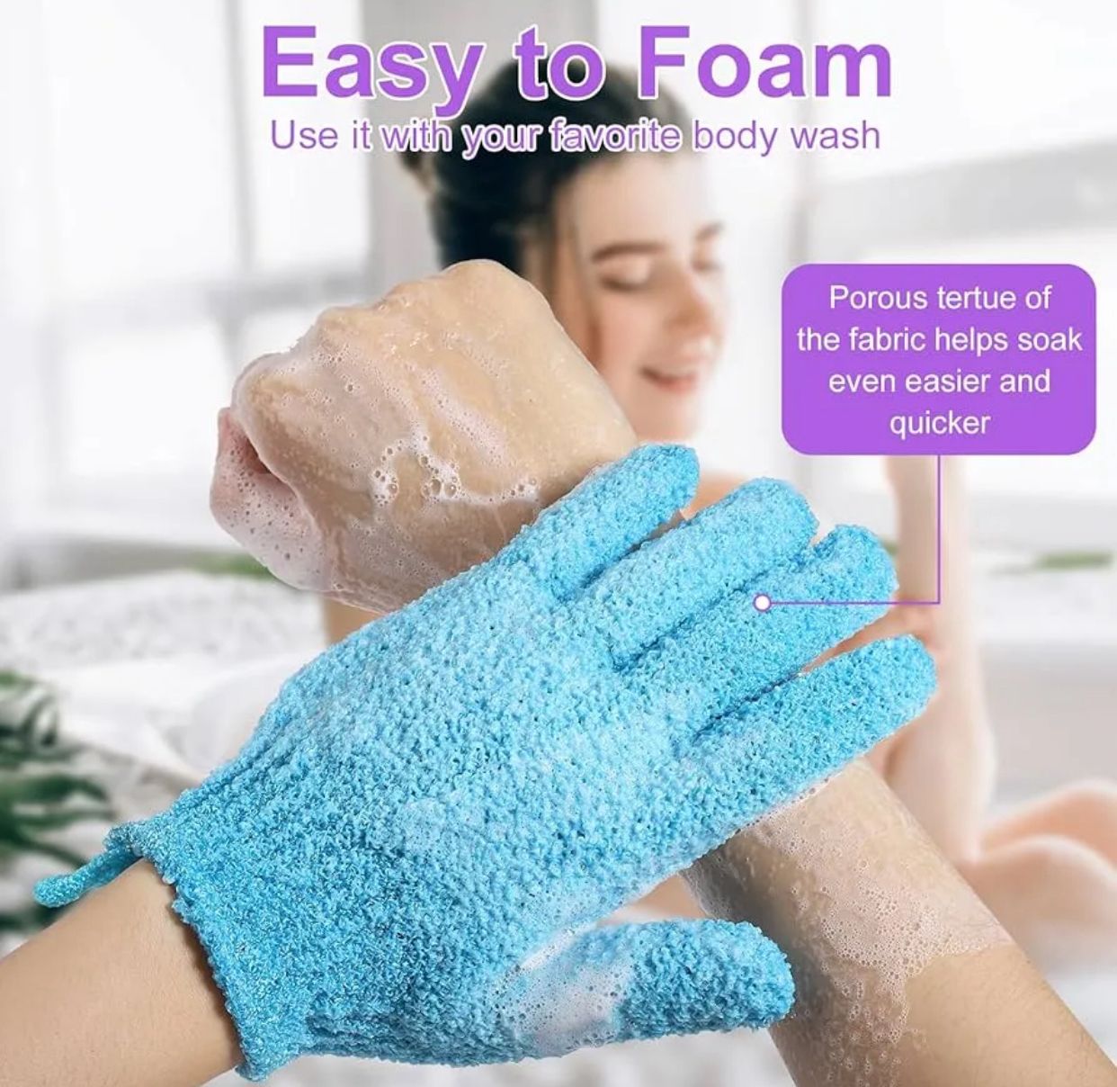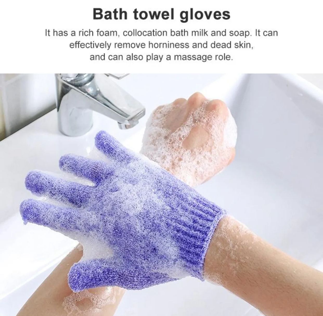Short Detail: A premium exfoliating bath glove designed to gently scrub, remove dead skin, and create rich bubbles—perfect for women, men, and kids.